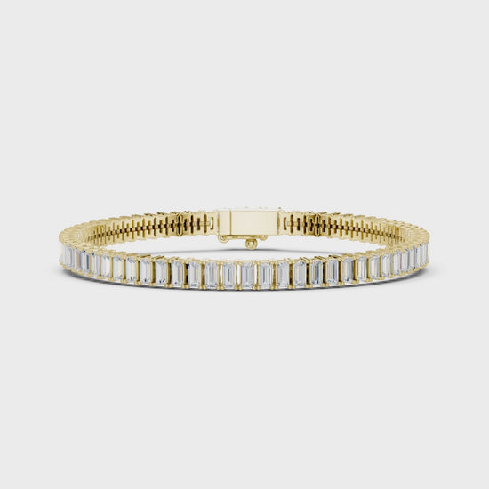 Evelina celebrates refined minimalism through a continuous sequence of baguette-cut lab-grown diamonds. Each diamond’s sleek geometry creates a mirror-like stream of light, embodying modern sophistication and architectural beauty in perfect harmony.
