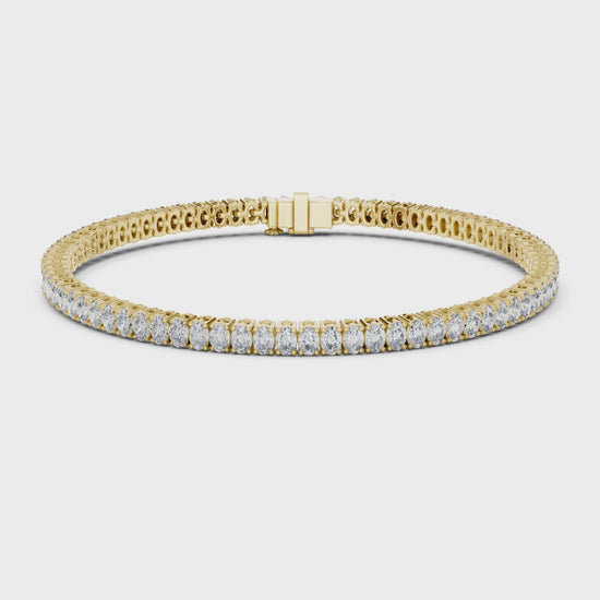 Elara embodies refined luxury — a continuous line of oval-cut lab-grown diamonds that shimmer with soft, elongated brilliance. Handcrafted in 10K or 14K gold, this timeless tennis bracelet radiates effortless sophistication and modern grace.