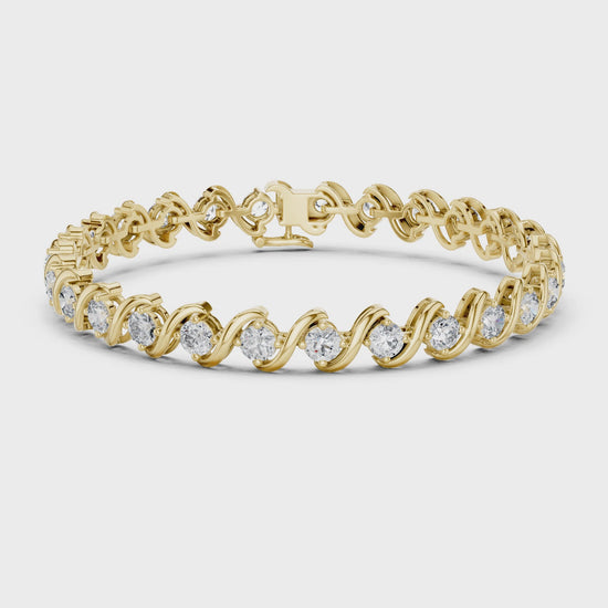 Serella captures the rhythm of light and movement through its sculpted wave-shaped links that cradle each round brilliant diamond. The result is a fluid pattern that reflects refined grace and European artistry.