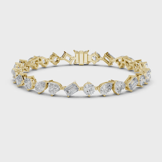 Valerene is a masterpiece of artistry and light. Alternating pear, round, and emerald-cut diamonds create a mesmerizing rhythm of brilliance and form — a contemporary reimagining of the classic tennis bracelet.